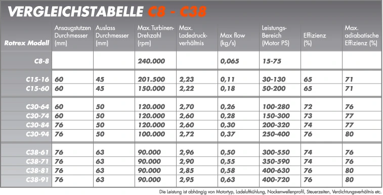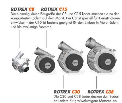 Rotrex’s standard product range consists of four product families: C8, C15, C30, and C38. In addition to our standard product families, we also offer custom designs. Since 2011, we have also offered the C38-91 supercharger, which was developed specifically for high-displacement engines.
